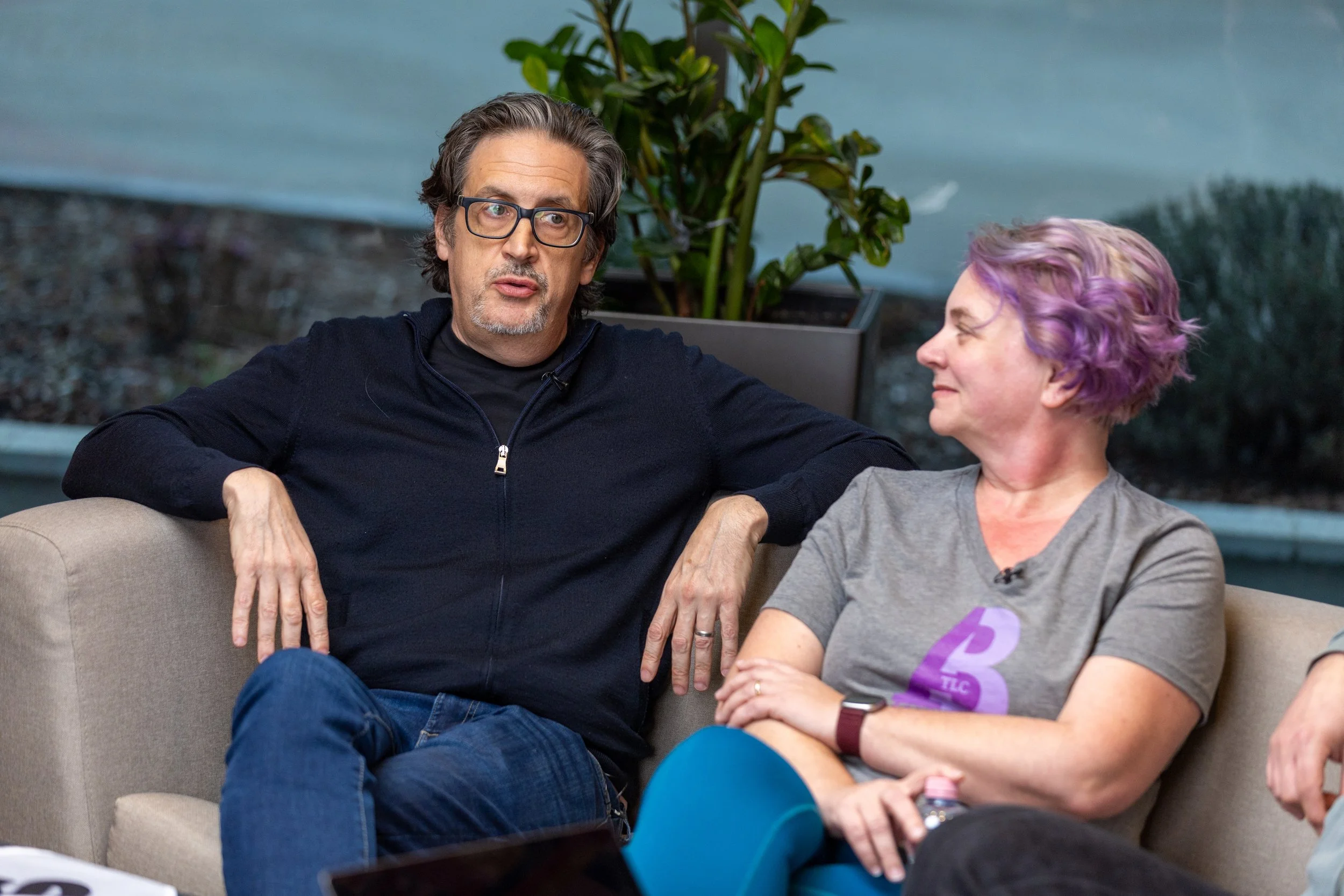 Kelly and Matt on the interview couch at Superweek, Kelly trying to hold back her fangirl adoration for her friend, mentor, and #mattgershoffed moment as Matt likely said something esoteric and brilliant all at the same time.