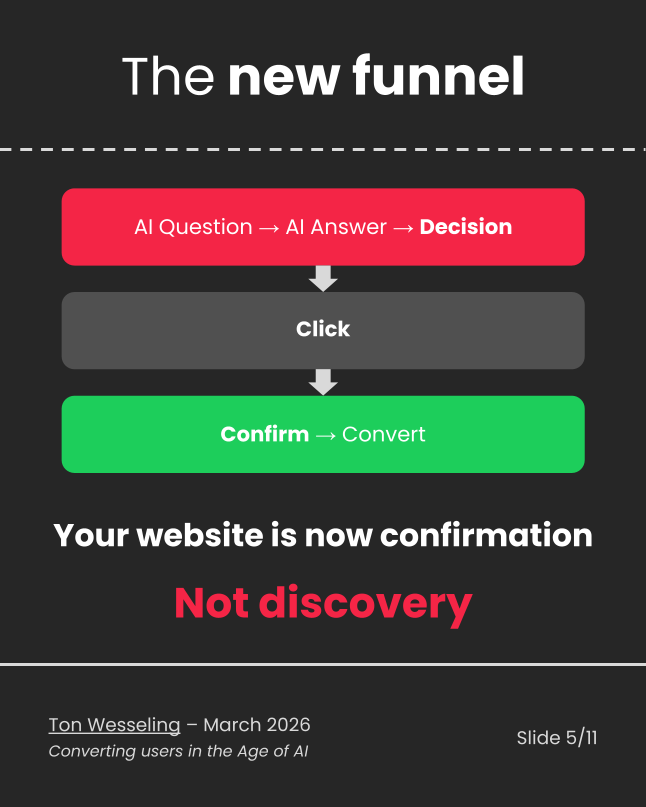 Ton Wesseling framed this perfectly: we’ve moved from a website-as-discovery model to a website-as-confirmation model.